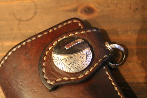 先日入荷の ナバホ族Michael Roanhorse氏 の コンテポラリーコンチョの装着したウォレットをご紹介。