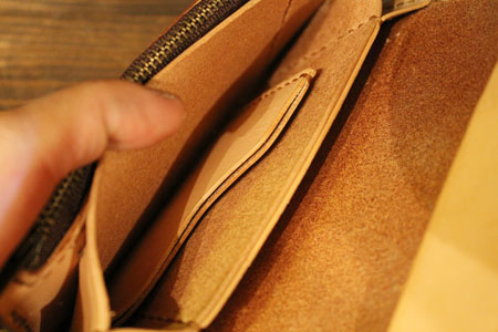 お札はお札入れの中にあるカード入れを跨ぐようにして収納します。