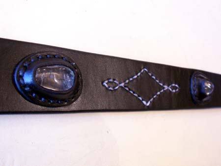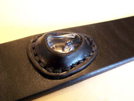 レザーベルトに、天然石をはめ込んで欲しいとのオーダーでした。