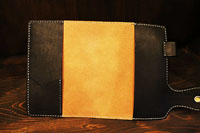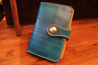 | 母子手帳を収納し、カードやその他色々収納できるようにとのご注文。手染めでブルーに染め上げました。 |