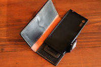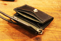| 収納力を上げたカードケースになります。お札も畳んで収納できるようになっています。良く物を無くす方だそうで、キーホルダーとロープも併せてオーダー頂きました。 |