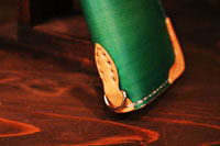 | 手染めで緑色に染め上げた、メガネケースです。鹿紐で巻き留めるタイプをご希望でした。 |