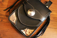 | レザースミスオリジナルメディスンバッグの蓋にパイソンを施しました。 |