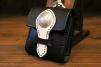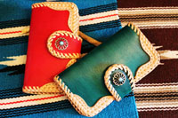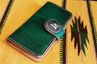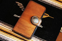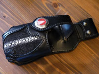 | スティングレイをインレイしたウォレットホルダー。レザースミスオリジナルコンチョをセットしています。 |