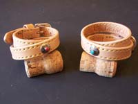 | 二重巻きレザーブレスレットです。カップルでのご注文でした。付けるときっちり中央にコンチョがくるように作りました。シンプルですが、飽きの来ないブレスレットになりました。 |