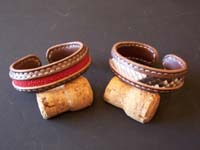 | これもまたカップルのお客様からのご注文。レザーバングルです。一方はパイソンを、もう一方には赤色スティングレイをインレイしています。 |