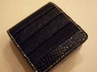 クロコダイル、シャーク、スティングレイ、リザード革をパッチワークした非常に変わったハーフウォレットです。小銭入れ内部は蛇革を総張りしております。 |