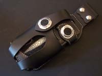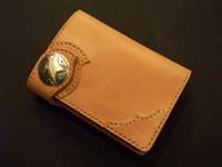 ウォレットホルダーのご注文。アシンメトリーなデザインでトライバルっぽくというご要望でした。レザースミスオリジナルスティングレイコンチョ使用。カッコイイですね〜。 |