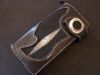 レザースミスオリジナルスティングレイウォレットとご一緒にウォレットホルダーのご注文も頂きました。共にオリジナルスティングレイコンチョを使用。出来る限りウォレットのエイ革を見せるようにデザインしました。 |