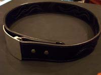 フルコードバンでベルトをとのオーダーでした。これまたスティングレイをインレイ。バックルはシルバー950バックルです。 |