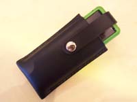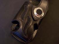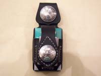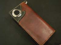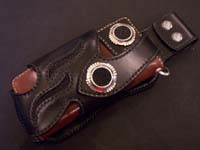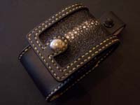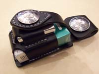 タバコ・ジッポケースです。レザースミスオリジナル携帯ケースのデザインを取り入れています。コンチョはモルガン、ハーフダラーを使用。 |