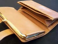 女性のお客様からがま口ウォレットのオーダー。収納を意識して製作しました。非常に可愛らしく、これからの成長も楽しみなウォレットですね^^ |