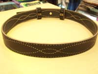 バックルを使用せず、ギボシで留めるタイプのウエスタンステッチベルトです。もちろん全て手縫いで仕上げています。 |