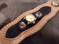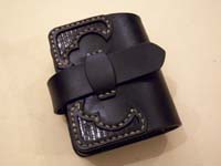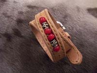 レザースミスお馴染みのビーズはめ込みのブレスレットです。同じようにベルトでのオーダーも承っております。