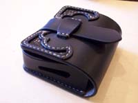 ハーレーのタンクに装着するETCケースです。マジックテープを使用し、取り付けられるようになっています。側面には配線を出す穴が開いております。 |