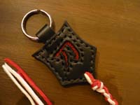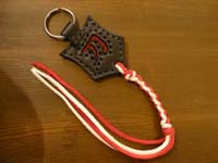 刀にお乗りのお客様から「刀キーホルダー」のご注文。赤のスティングレイで刀をインレイしています。 |