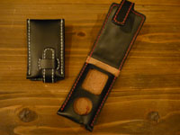 | 混合なめしの革で製作した携帯ケースです。マジックテープ仕様となっています。 |