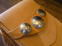 | レザースミス レギュラーアイテム メディスンバッグのコンチョを5セントからハーフダラーへ変更。迫力が出ますね。 |