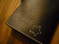 | システム手帳のオーダーです。☆をステッチで入れるというご要望でした。可愛いですね。 |