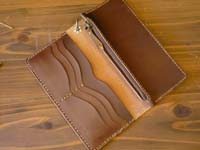 | バタフライのようにカード入れ部分が開くロングウォレットです。カードの収納が倍になりました。小銭入れ部分もジッパーがより開く作りになっています。 |