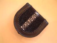 | お客様のお使いのコインケースと同じ作りで、エイ革を使用し製作をとのことでした。小さなコインケースですが、エイ革を使用することで、高級感と存在感のあるコインケースに仕上がりました |