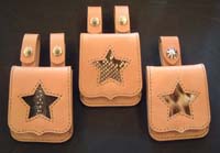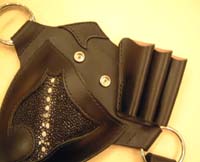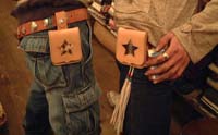 | アメリカ1ドルコンチョ、5セントコンチョ使用。留め具部分はマグネットボタンを使用し、留めやすく、ベルトは2本使用すればたすき掛けも出来るようになっています。 |