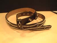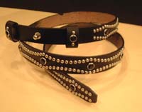 一切金具が皮膚に当たらないようにとのオーダーでした。留め具はバックルを使わず、ギボシ留めにしています。幅25ミリと細いですが着けるとインパクトのあるベルトです。