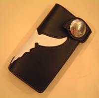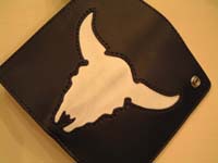 レザースミスロングウォレット’05のデザインそのままに牛骨をホワイトディアスキンでインレイしました。コンチョはレザースミスオリジナルコンチョを使用。