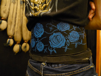 | なんと、コルセットのご注文。ブルーで全体にバラをペイント。お医者様、整骨院の先生と色々話し合い、完成しました。 |