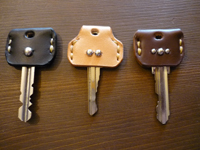 | キーカバーです。見分けがつきやすくするため、スタッズが1つと2つと3つ付いています。 |