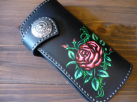 | バラをペイントしたロングウォレットです。女性のお客様からのご注文でした。エレガントなロングウォレットに仕上がりました。 |