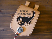 | 蠍をスティングレイでインレイしたメディスンバッグです。ペイントも施しております。2段構造のメディスンバッグで、収納力もあります。レザースミスオリジナルスティングレイコンチョ使用。 |