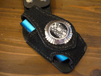 | エイ革を使った携帯ケースです。レザースミスオリジナルの形をそのままにスティングレイ仕様にしました。レザースミスオリジナルコンチョ(スティングレイ)を使用。 |