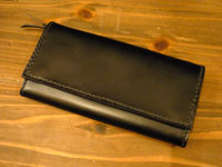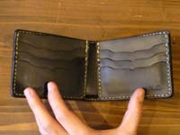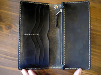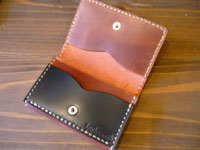 | 外面ブラウンコードヴァン、内部はブラックの牛革で製作しました。お札入れ部分には敷居を設けています。小銭入れは無く、両面カード入れになっています。 |