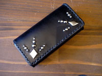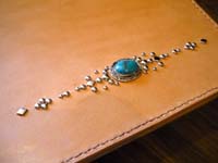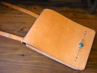 | 大き目のショルダーバッグです。蓋部分にはターコイズコンチョとその周りにスタッズを配しています。 |