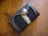 | スティングレイ連石革をインレイした6連キーケースです。3つ折キーケースで、前面にスティングレイが入った非常にインパクトのあるキーケースに仕上がりました。 |