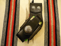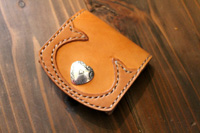 | コインケースのご注文。インディアンジュエリー大好きのオシャレなお客様で、デザインはお任せということでしたので、ナバホ族のモチーフ「ナジャ」をイメージしたデザインにしました。 |