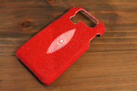 | スマートフォンケースのご注文。アンドロイドで少し大きめの携帯ケースにレッドスティングレイを贅沢に貼り付けました。 |