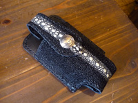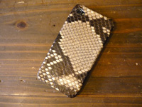 | レザースミスで大人気のスマフォカバーカスタムです。ナチュラルタン革やパイソン、お好みの革で製作いたします。 |