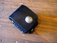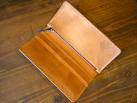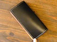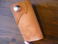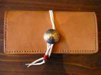 | 鹿紐留めのロングウォレットです。ハーフダラーコンチョを配置し、シンプルですが、飽きの来ないウォレットになりました。 |