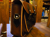 サッチェルバッグです。サッチェルバッグとはイギリスのランドセルですね。それをレザースミスらしくコンチョ等を入れて。
