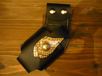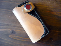 | レザースミスオリジナルフルパイソンウォレットを牛革でというご注文。ナチュラルとブラックでの製作となりました。コンチョはレザースミスオリジナルレッドスティングレイコンチョ。 |