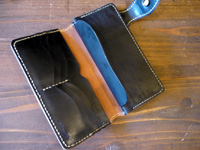 | 最近レザースミスでのご注文の人気ナンバー1。2TONEウォレットです。外装ブラック、内装ナチュラルです。 |