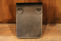 | キーフックで吊るせるように裏にDカンを装着したメディスンバッグ。レザースミスオリジナルメディスンバッグのデザインそのままでの製作となりました。 |