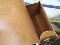 | お持込の財布と同じ作りで製作をとのこと。厚くなりすぎないよう心がけて作りました。外の小銭入れが内部と貫通している面白いデザインでした。 |