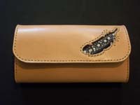 お客様デザイン持ち込みのエイ革使用ロングウォレットです。こういったインレイ部分のみのデザイン持ち込みも承っております。 |
