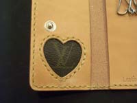 ルイヴィトンのリメークキーケースです。内部にハート型にインレイし、「LV」をはめ込んでいます。お母様へのプレゼントだそうです。 |