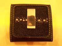マネークリップ付きスティングレーコインパースです。フラップ部分は前方後円墳からのデザインだそうです^^レザースミスオリジナルコンチョエイ仕様。 |