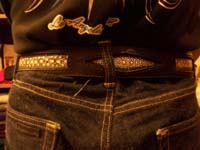 エイ革の連石を活かしたベルトです。連石部分が美しく、豪華なベルトです。バックルもオーダーして頂き、バックルにもエイ革がはめ込まれています。 |